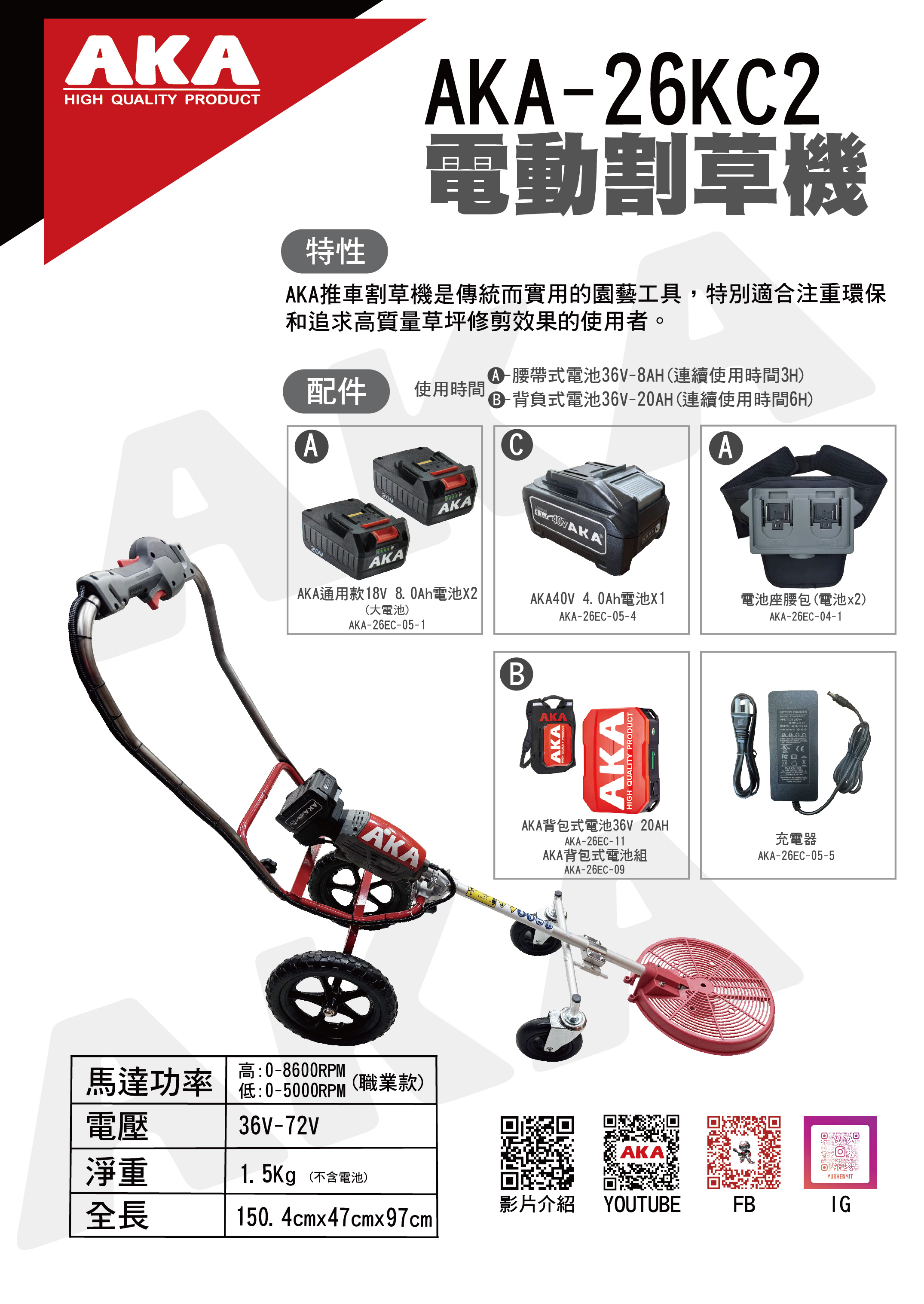 AKA電動手推割草機
